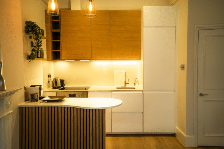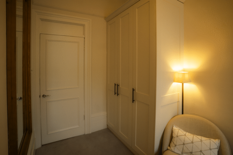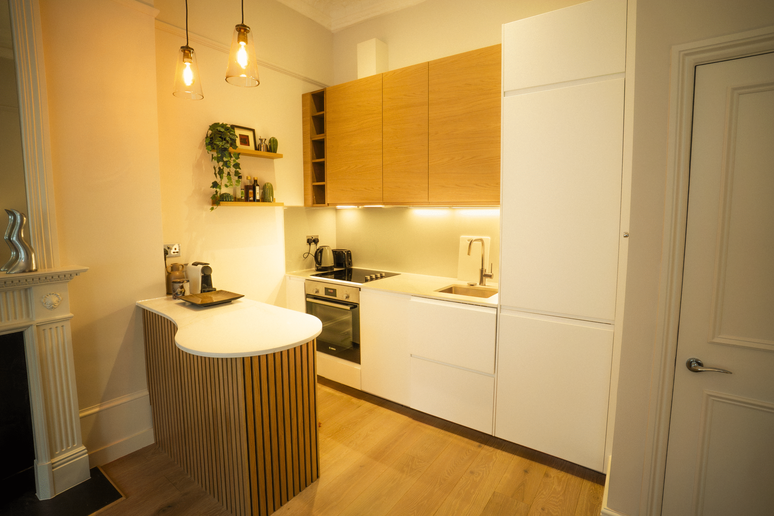 This project involved the full refurbishment of a residential apartment in SW5, completed to a high standard for use as an Airbnb rental. The property was taken back to a blank canvas and rebuilt with new services, bespoke joinery, and a clean, modern finish throughout.